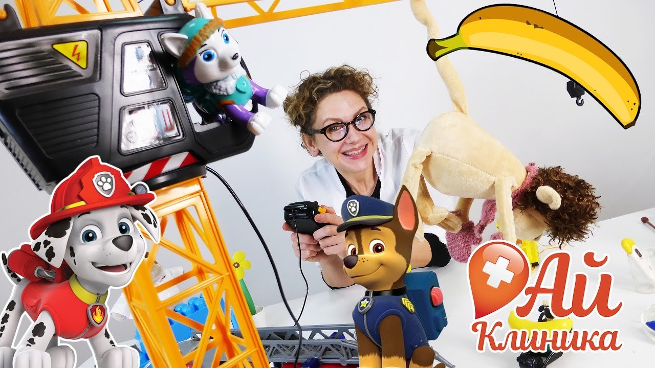 ЩЕНЯЧИЙ ПАТРУЛЬ сегодня привезли в #АйКлиника огромный подъемный кран! Что бы это значило? Ответ нашелся сразу - на подъемном кране застряла обезьянка! Надо срочно её доставать! Ну и не забыть покормить, конечно. Только вот Доктор АЙ никак не может придумать, как достать обезьянку. Ты поможешь? Смотри наше новое развлекательное видео для детей и играй с нами в доктора! Не забудь подписаться, доктор АЙ ждёт тебя и твои игрушки на приём в АЙ-Клинику по адресу: https://www.youtube.com/channel/UCGniralnly1KvmlBMjGEVLA Подписывайся на наших друзей, канал Смешарики Live: https://www.youtube.com/channel/UCy15c4beE539pcPFt4-UrHg Не забудь подписаться на канал СТРАНА ДЕВЧОНОК, чтобы следить за новыми приключениями: https://www.youtube.com/channel/UCCe6oRAVWZFztZJMAujRu7A Заходи на канал, где живут наши лучшие подружки - Бантики-Косички: https://www.youtube.com/channel/UCZJi3695pl6tfkAHp4BLMDA Заходи к нам на сайт: http://www.4screens.ru/ Ищи нас в социальных сетях! ВКонтакте: https://vk.com/club132423271 Фейсбук: https://www.facebook.com/4ScreensShow Твиттер: https://twitter.com/4Screens_Studio Инстаграм: https://www.instagram.com/4screensstudio/