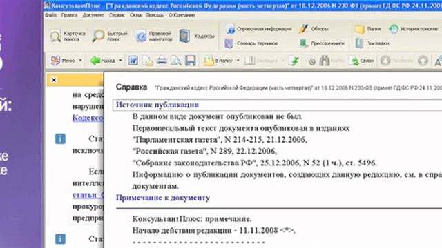 Видеообзор возможностей программы Консультант Плюс - быстрый поиск, стартовое окно, правая панель, улучшенная навигация, умные ссылки.