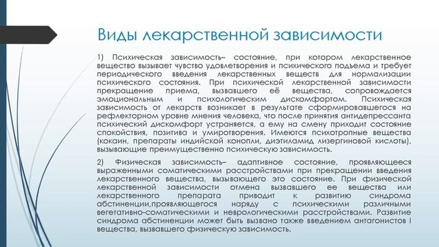 Лекция «Болеутоляющие средства. Средства, вызывающие лекарственную зависимость» (часть 2)
