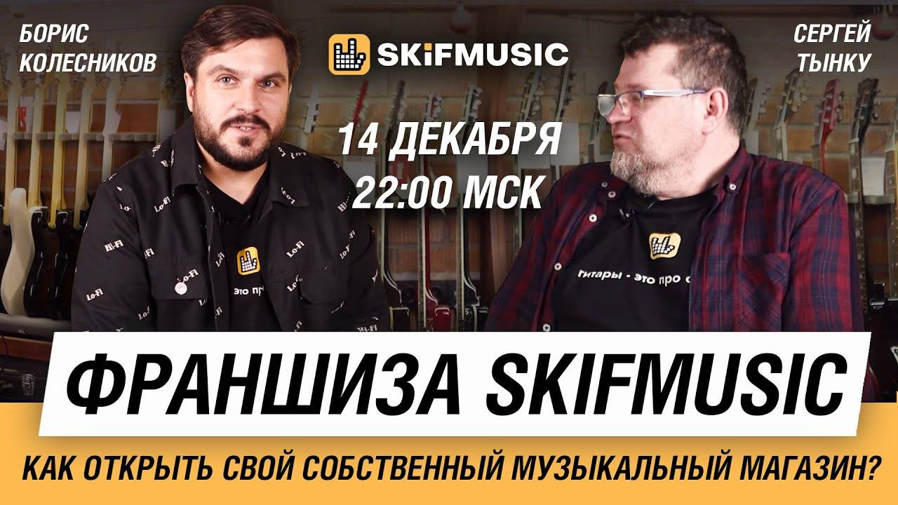 #франшиза #skifmusic #музыкальныйбизнес Открой свой музыкальный магазин SKIFMUSIC: https://skifmusic.ru/x/7f1 Не пропустите наш захватывающий прямой эфир, где основатель SKIFMUSIC Борис Колесников и опытный эксперт музыкальной индустрии Сергей Тынку раскроют секреты успешного бизнеса в мире музыки. Узнайте, почему франшиза SKIFMUSIC стала уникальным решением для владельцев малого и среднего бизнеса, независимо от вашего опыта в музыкальной индустрии. Полезные ссылки: Разыгрываем гитары каждый месяц – https://skifmusic.ru/x/EOR Огромный выбор электрогитар – https://skifmusic.ru/x/nN7 Больше акустических гитар – https://skifmusic.ru/x/mBY Классические гитары – https://skifmusic.ru/x/EoH Бас-гитары – https://skifmusic.ru/x/2zA Гитарный струны для любой гитары – https://skifmusic.ru/x/nvV Гитарное усиление и педали эффектов – https://skifmusic.ru/x/NcQ Чехлы и кейсы – https://skifmusic.ru/x/XIP Аксессуары для гитар – https://skifmusic.ru/x/1Gv SKIFMUSIC.RU - это живые музыкальные шоурумы в центре Москвы, Санкт-Петербурга и Самары, Казани, Магнитогорска, Томска и других городов, а также более 100.000 товаров на сайте. Мы собрали огромную коллекцию крутых гитар: начиная от редких винтажных экземпляров из США и Европы, заканчивая новыми крутыми инструментами! Каждый шоурум оборудован гитарной мастерской с профессиональным мастером: на все инструменты действует пожизненная гарантия, а доставка осуществляется в любую точку мира! Подпишись на наши соц. сети: Вконтакте – https://skifmusic.ru/x/PS5 Наш сайт – https://skifmusic.ru/x/SnB Telegram – https://skifmusic.ru/x/CCv Нельзяграм – https://skifmusic.ru/x/v7Q YouTube – https://skifmusic.ru/x/c24 #skifmusic #франшизаskifmusic #музыкальныйбизнес #франшизаskifmusic #франшиза #сергейтынку #борисколесников 0:00 Вступление 0:10 Привет, друзья! Вы на канале SKIFMUSIC 0:55 Про книги 3:30 С чего начинал? Про масштабирование в франшизе 5:25 В чем суть франшизы? 13:55 Как открыть свой магазин? 16:10 Почему SKIFMUSIC интересная франшиза? 25:10 Выгода в франшизах 31:53 Почему люди не хотят присоединяться к SKIFMUSIC? 37:36 Почему стоит присоединиться к SKIFMUSIC? 42:05 Тяжело ли вести такую франшизу? 44:15 Как Борис видит своё будущее? 48:42 Какие еще бизнесы планируются? 56:00 Необычный ход магазина SKIFMUSIC в Самаре 58:00 Какой бизнес прибыльнее? 1:02:25 Изменилась ли коллекция гитар Бориса за год? 1:05:55 Переживает ли Борис за конкуренцию в франшизе? 1:07:55 Подарок от магазина SKIFMUSIC 1:14:32 Прощание