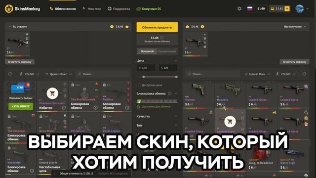 Ссылка с бонусом: https://skinsmonkey.com/ru/r/garant Промокод: GARANT Всем привет, у микрофона Garant. Сегодня я расскажу вам о сервисе SkinsMonkey, который позволит вам обменивать ваши старые скины на новые. Связь со мной: VK: https://vk.com/garantcis E-Mail: garantcsgo@yandex.ru