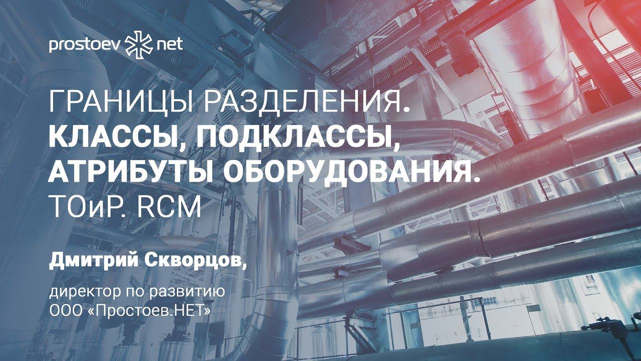 http://www.prostoev.net/ Мы информационно-образовательный проект по вопросам организации управления процессами поддержания надежности, проведения технического обслуживания и ремонтов технологических систем и оборудования. Подписывайтесь на наш YouTube канал https://www.youtube.com/user/prostoevnet _ Тема сегодняшнего видео «Границы разделения ответственности. Классы, подклассы. Общие атрибуты. Атрибуты на класс оборудования. ТОиР. RCM». 00:00 prostoev.net 00:20 В предыдущем видео мы говорили про структуру производства, основное производство, технологический регламент 00:27 Границы разделения 01:08 Классы, подклассы 02:46 Атрибуты 03:24 Общие атрибуты 03:33 Атрибуты на класс оборудования 03:47 В следующем видео мы поговорим про обслуживающее производство, пример транспортного цеха и складского хозяйства _ Мы в соцсетях: Fb https://www.facebook.com/www.prostoev.NET/ VK https://vk.com/prostoev__net Linkedin https://www.linkedin.com/groups/8464641 Одноклассники https://ok.ru/group/58505577300000 Инстаграм https://www.instagram.com/prostoevnet/ _ http://www.prostoev.net - Информационно-образовательный портал Управления ТОиР #на_вебинаре_обучение_тоир #prostoevnet #простоевнет #техническое_обслуживание #ремонт #тоир #rcm #RCM #управление_надежностью #надежность_оборудования