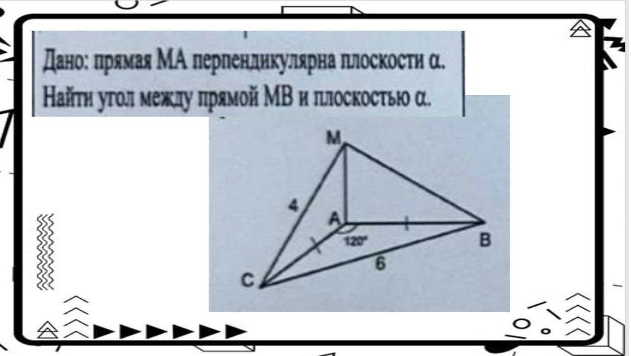 прямая МА перпендикулярна плоскости альфа. найти угол между прямой МВ и плоскостью альфа