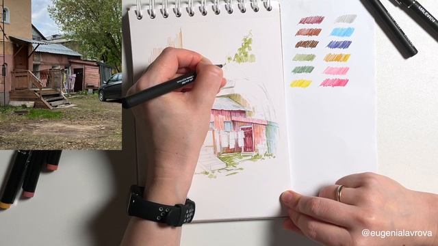 Тихий дворик цветными линерами от Евгении Лавровой | МАСТЕР-КЛАСС Малевичъ