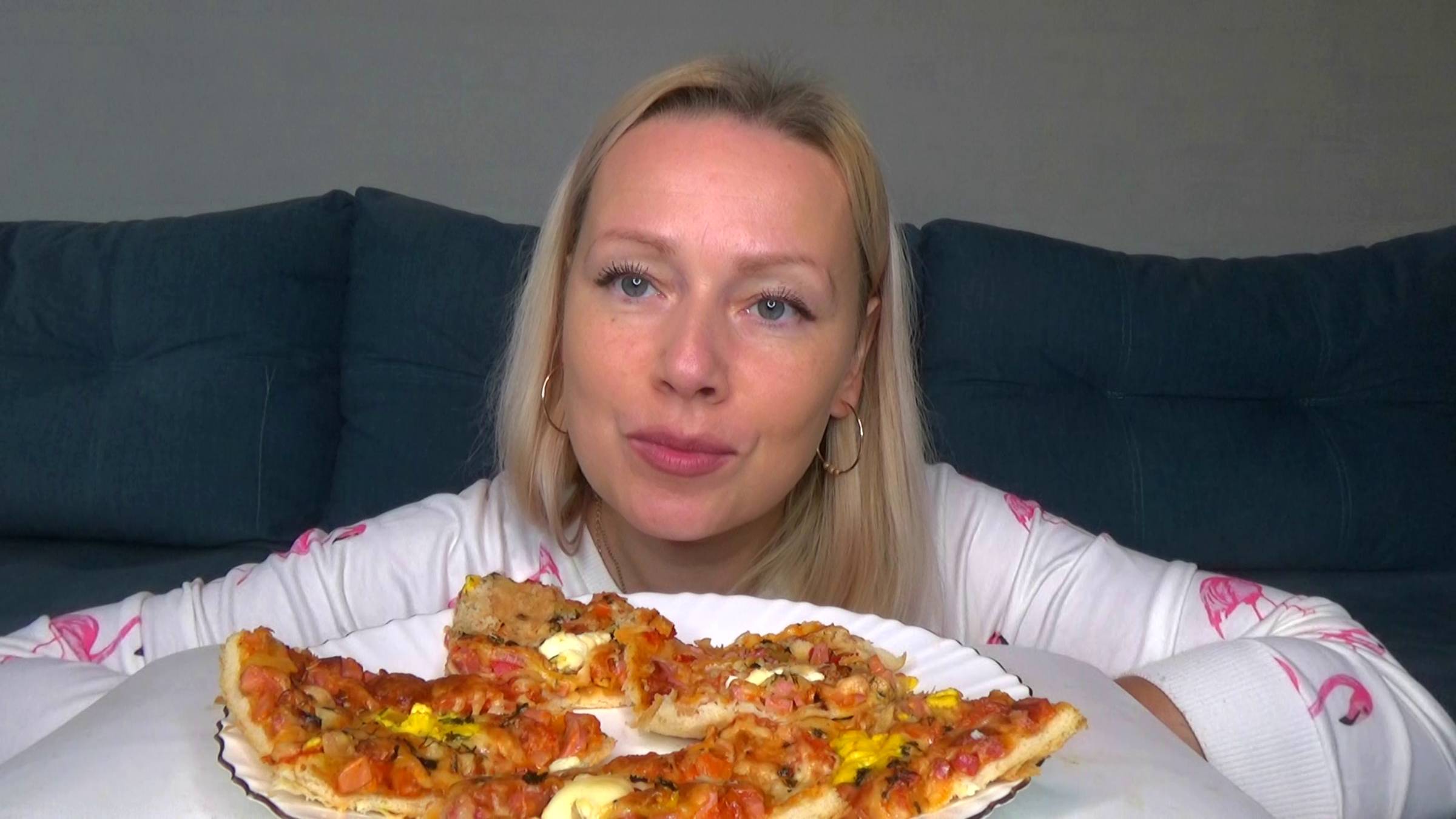 Мукбанг пицца домашняя. еда на камеру.