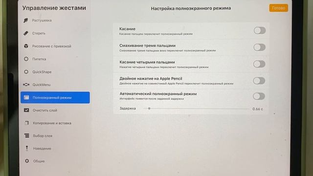 Настройки и управление жестами в Procreate