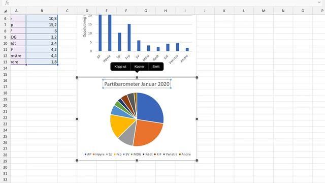 Stolpe-, sektor- og linjediagram i Excel (iPad)