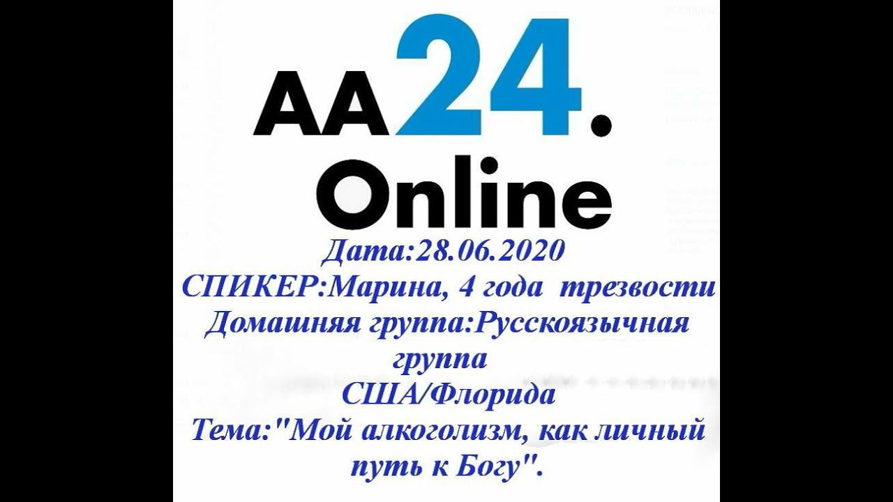 28.06 Марина, 4 года Русскоязычная группа США/Флорида Тема:"ой алкоголизм, как личный путь к Богу"