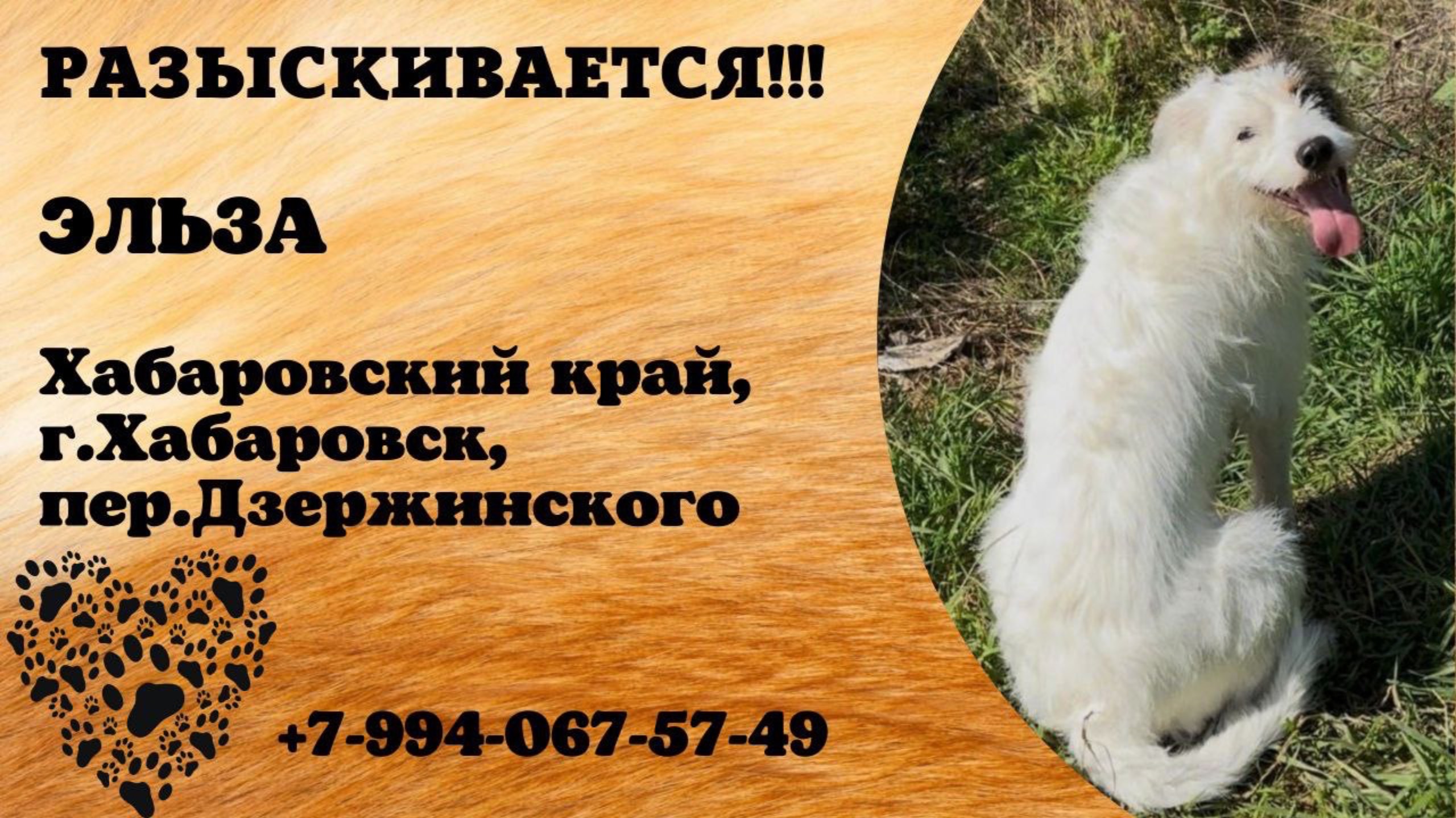 Пропала собака! ЭЛЬЗА. Хабаровск край, г.Хабаровск.